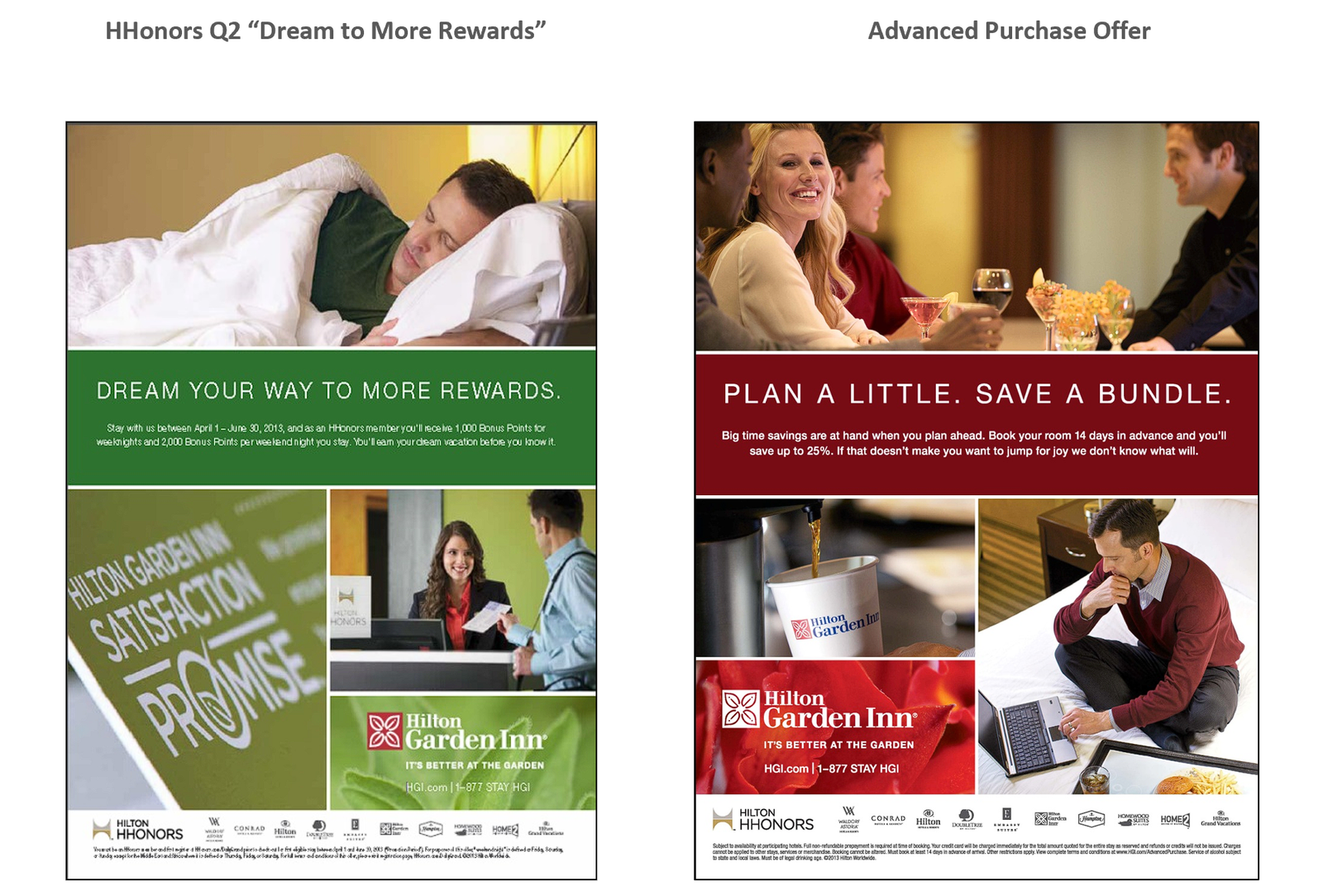In 2013, Hilton Garden Inn’s objective was to promote the brand’s “story” in a fresh, bold, and disruptive way, to generate incremental bookings and revenue. The integrated campaign included 2 TV spots, digital PPC ads, global billboards, photography, and on-property materials, – all describing ways to enjoy Hilton Garden Inn’s hotel features anywhere around the world. The campaign also included an infomercial film, social media posts, and emails to HGI traveler audiences.
