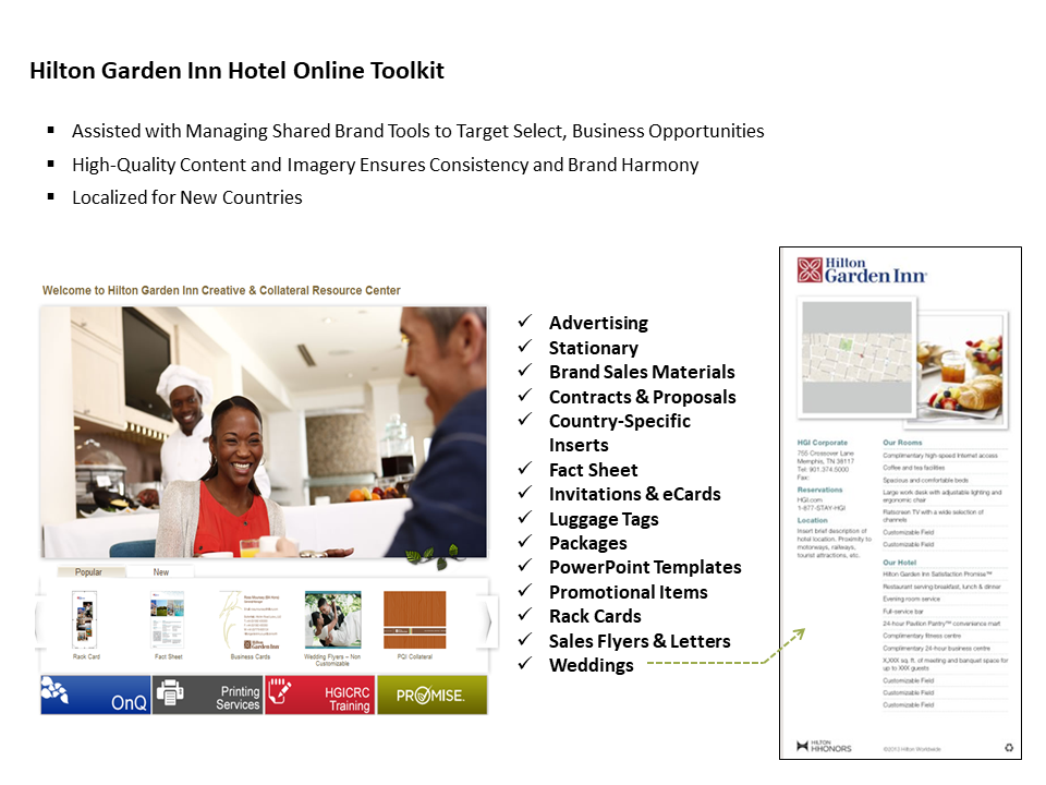 Ensured the Hilton Garden Inn brand identity was represented consistently globally.